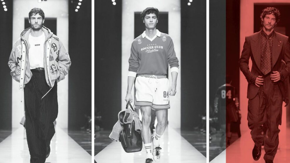 Ο Στέφανο Γκαμπάνα και ο Ντομένικο Ντόλτσε απομακρύνθηκαν από τις μονοθεματικές κολεξιόν Dolce&Gabbana (για την άνοιξη του 2026 το θέμα ήταν το «pyjama dressing») για να αποκαλύψουν ένα πιο ευρύ «πορτρέτο» στιλ για την πολυμορφία του άνδρα: τον στοχαστή, τον οραματιστή, τον μεσογειακό εραστή, τον ρομαντικό. Και πώς μεταφράζονται οι διαφορετικοί ρόλοι μέσα από ρούχα-στολές; Με «γούνινα» παλτό, πολύχρωμα πουλόβερ, γυαλιά με χοντρό σκελετό, σακάκια από παραδοσιακά υφάσματα, ποδοσφαιρικές στολές με το λογότυπο Dolce&Gabbana, λεοπάρ ρόμπες.