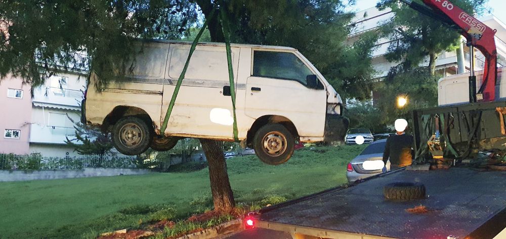 Στιγμιότυπο από απομάκρυνση εγκαταλελειμμένου οχήματος