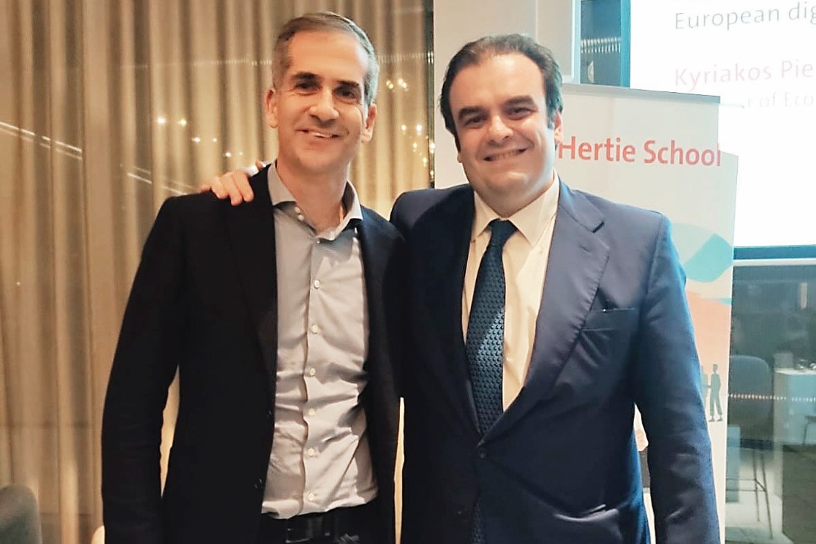 Από τις ενδιαφέρουσες συναντήσεις ήταν εκείνη με τον πρώην δήμαρχο της Αθήνας, Κώστα Μπακογιάννη, ο οποίος διδάσκει στο Πανεπιστήμιο Hertie του Βερολίνου, σε εκδήλωση του οποίου συμμετείχε ο Κυριάκος Πιερρακάκης, με αντικείμενο τον ψηφιακό μετασχηματισμό. Ο κ. Μπακογιάννης τον υποδέχθηκε και αγκαλιασμένοι πόζαραν στον φακό…