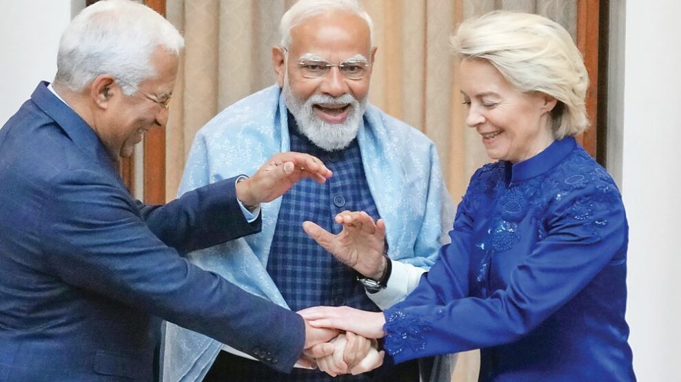 Την ίδια στιγμή, η ΕΕ και η Ινδία ολοκληρώνουν μια συνολική συμφωνία ελεύθερου εμπορίου και ασφάλειας, με την επίσημη ανακοίνωση να αναμένεται στη σύνοδο ΕΕ – Ινδίας στο Νέο Δελχί. Ο πρόεδρος του Ευρωπαϊκού Συμβουλίου, Αντόνιο Κόστα, και η πρόεδρος της Ευρωπαϊκής Επιτροπής, Ούρσουλα φον ντερ Λάιεν, παρευρέθηκαν στις εκδηλώσεις για την Ημέρα της Δημοκρατίας της Ινδίας στις 25 Ιανουαρίου ως επίτιμοι προσκεκλημένοι, ενώ συναντήθηκαν και με τον πρωθυπουργό Ναρέντρα Μόντι.